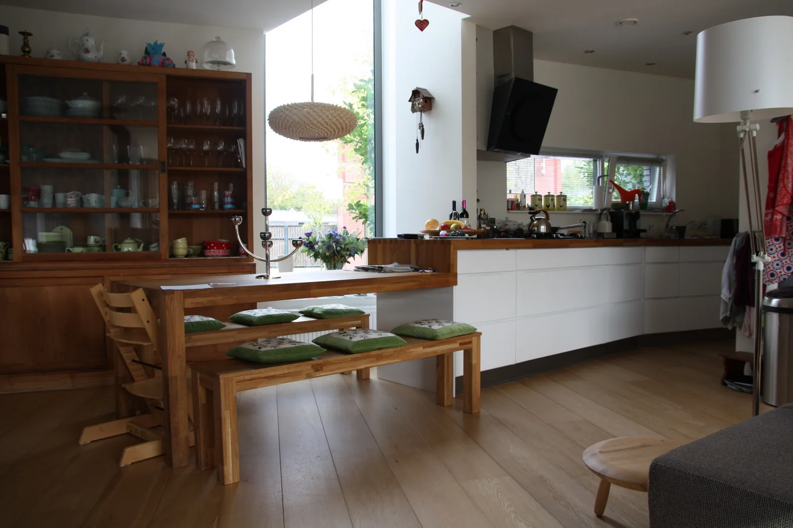 Verbouwde woning in Loenen aan de Vecht met prefab houten aanbouw en doorgetrokken kap