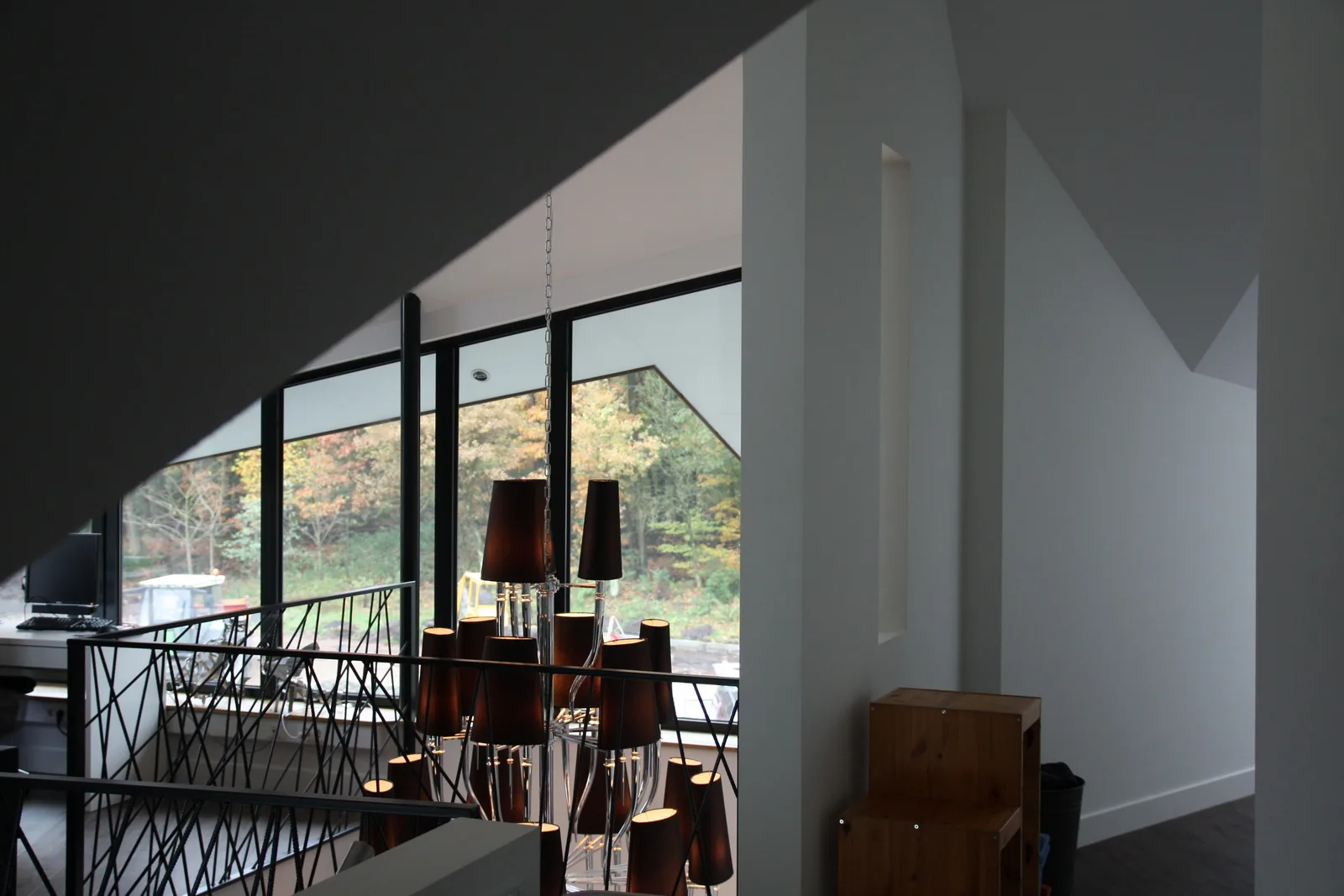 Naast de entree van landgoed Prattenburg ligt een bijzondere driehoekige kavel die aan twee zijden wordt omsloten door een bosrand en aan de derde zijde grenst aan de rondweg van Veenendaal. Het is een plek met sterke contrasten: rust en natuur tegenover infrastructuur en beweging. Vanaf het begin was duidelijk dat dit geen locatie is voor een standaard woning. Ook de opdrachtgever had een uitgesproken wens: het moest een huis worden met een uitgesproken 'wauw'-effect. Juist dit soort complexe locaties zijn een kans om architectuur en landschap samen te laten werken.