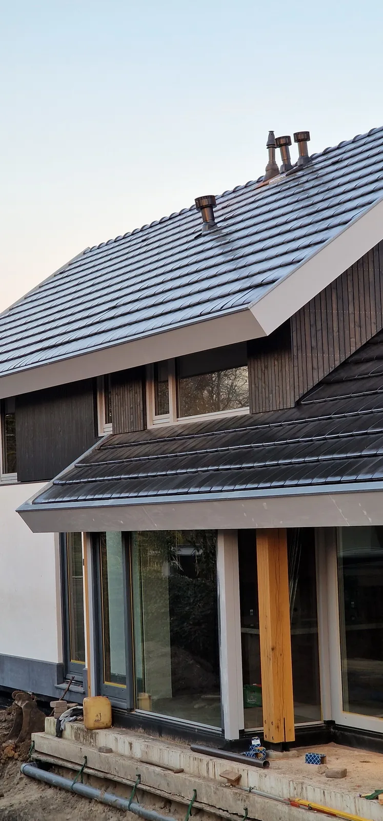 Alle gevels zijn volledig voorzien van hoogwaardige isolatie en afgewerkt met een combinatie van pleisterwerk en verticale, zwart gebeitste houten delen. Samen met de nieuwe strakke dakpan en de met zink beklede dakkapel is de woning weer helemaal klaar voor de toekomst: comfortabel, energiezuiniger en met een rustige, tijdloze uitstraling.