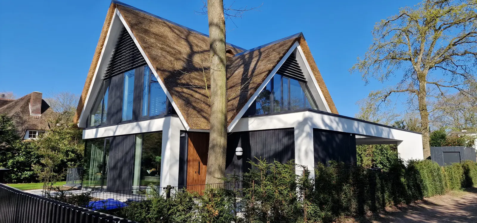 Moderne villa met rieten kap
