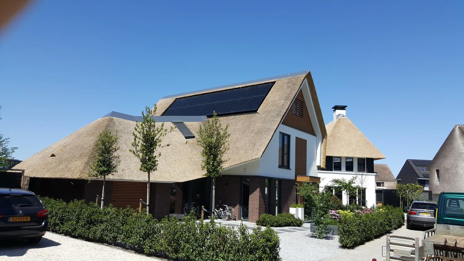 De materialisatie sluit aan bij de rustige uitstraling van het ontwerp. Natuurlijke materialen en ingetogen kleuren zorgen voor een tijdloos beeld dat mooi veroudert. De woning is ontworpen met oog voor duurzaamheid, energiezuinigheid en toekomstbestendig gebruik, zonder dat dit zichtbaar wordt als technisch statement.