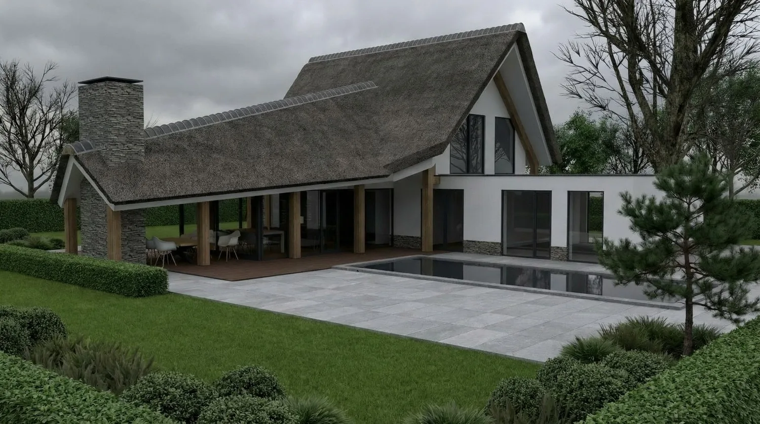 Moderne villa met rieten kap