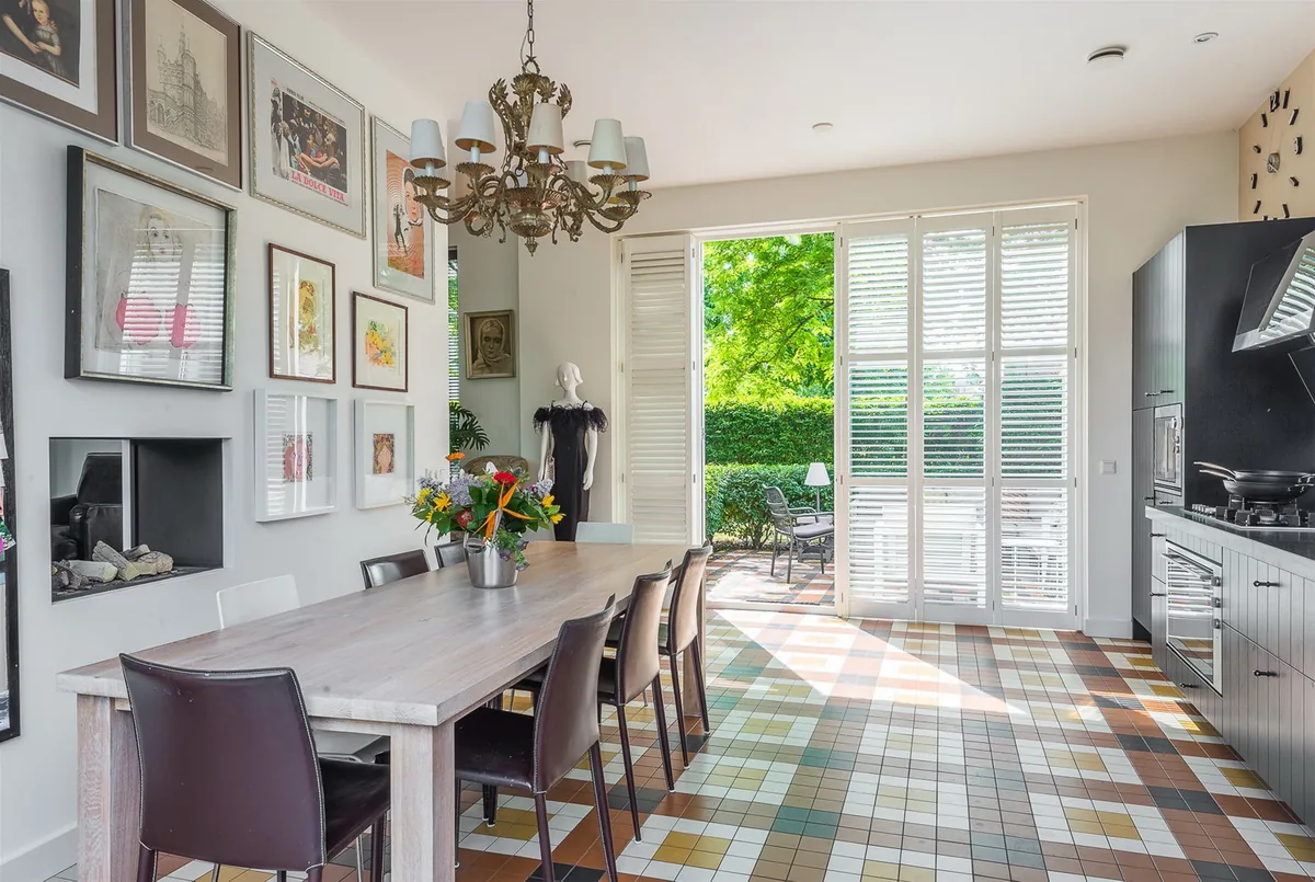 Keuken op straatniveau met terrassen en overgang naar hagentuin