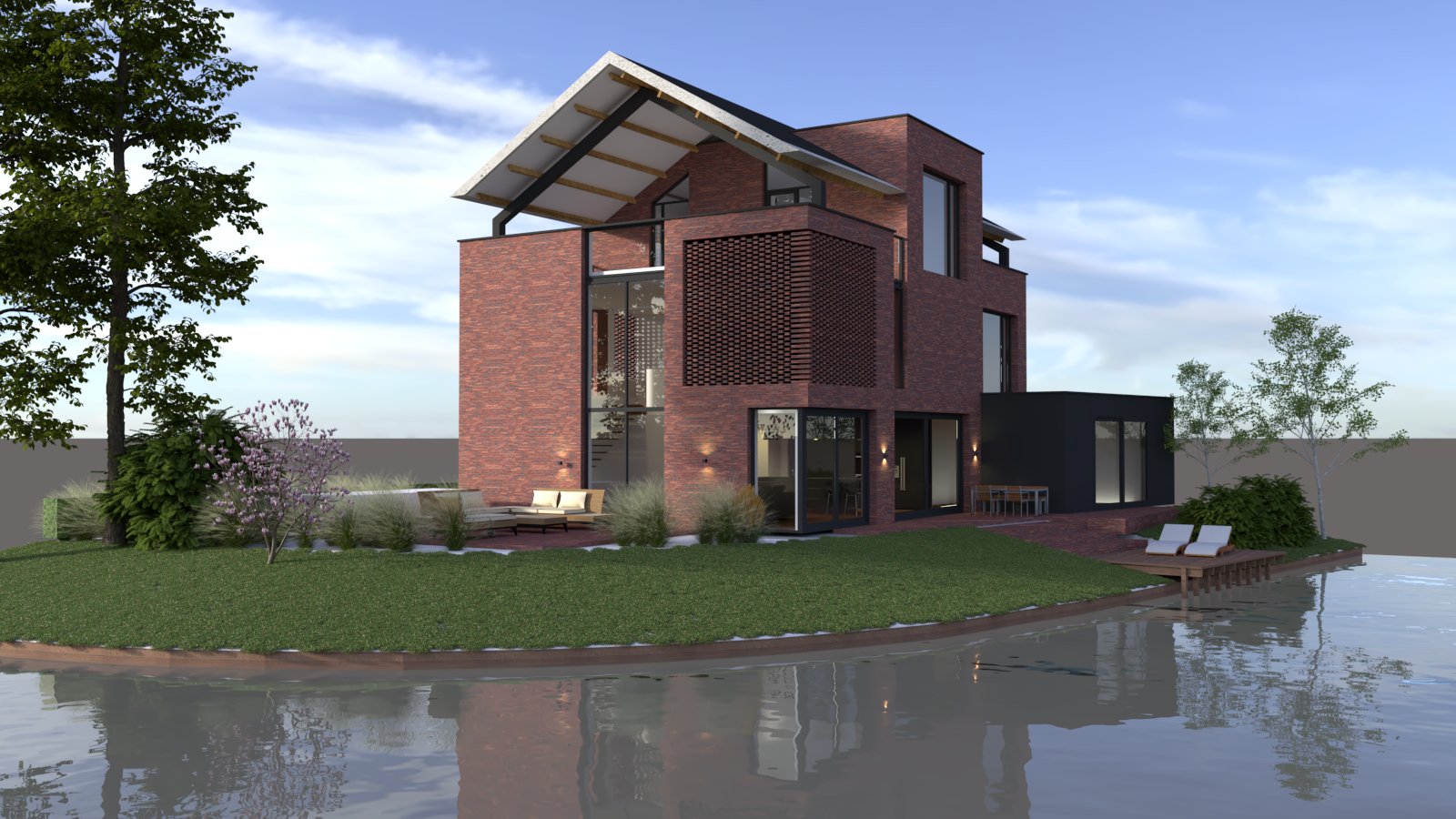 Aan de rand van de wijk grenzend aan prachtig open water gaan we deze bijzondere woning realiseren. Binnen de beperkingen van het kavalpaspoort is gezocht naar een zo goed mogelijke vertaling van de bijzondere wensen van de opdrachtgever: onder andere de ruimte op een dakterras om buiten te kunnen slapen. Deze bijzonderheden zorgen er voor dat de woning niet alleen in gebruik straks perfect aansluit bij de bewoners maar dat deze ook een bijzonder markante verschijning gaat worden in deze wijk in ontwikkeling.